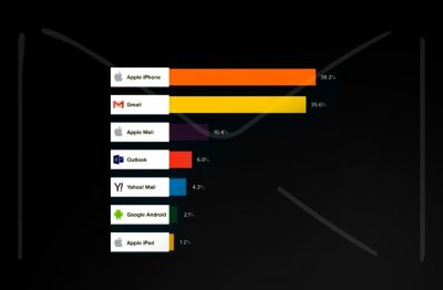 Come si vede dal grafico, l’incidenza dei Client Apple sulla totalità dei client di posta elettronica utilizzati, è molto alta, e in particolare si attesta a queste percentuali