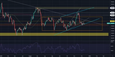 Tornando all’analisi tecnica, la formazione di un triangolo discendente mostra la sua natura ribassista insieme a volumi sempre più bassi. Infatti dopo aver toccato i massimi ad Agosto, il prezzo ha ritracciato andando a testare più volte il supporto a 1678 dollari – 1700 dollari e formando dei massimi decrescenti (partendo da Agosto 2020). Successivamente abbiamo assistito ad un breakout, che poi si è rivelato “falso”. Tornando, dopo, sul forte supporto in area 1764 dollari – 1776 dollari.